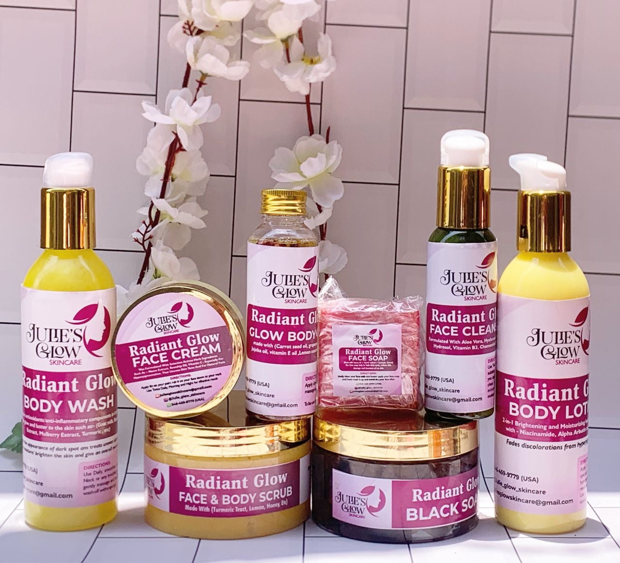 Unfortunately, many resort to using bleaching products in their quest for the perfect skincare solution. Here at Julie’s Glow Skincare S.K.N we specialize in formulating 100% natural skincare products specifically tailored for brown skin. Our products are not only safe and effective but also free from bleaching agents, ensuring that you can love and embrace your natural complexion.